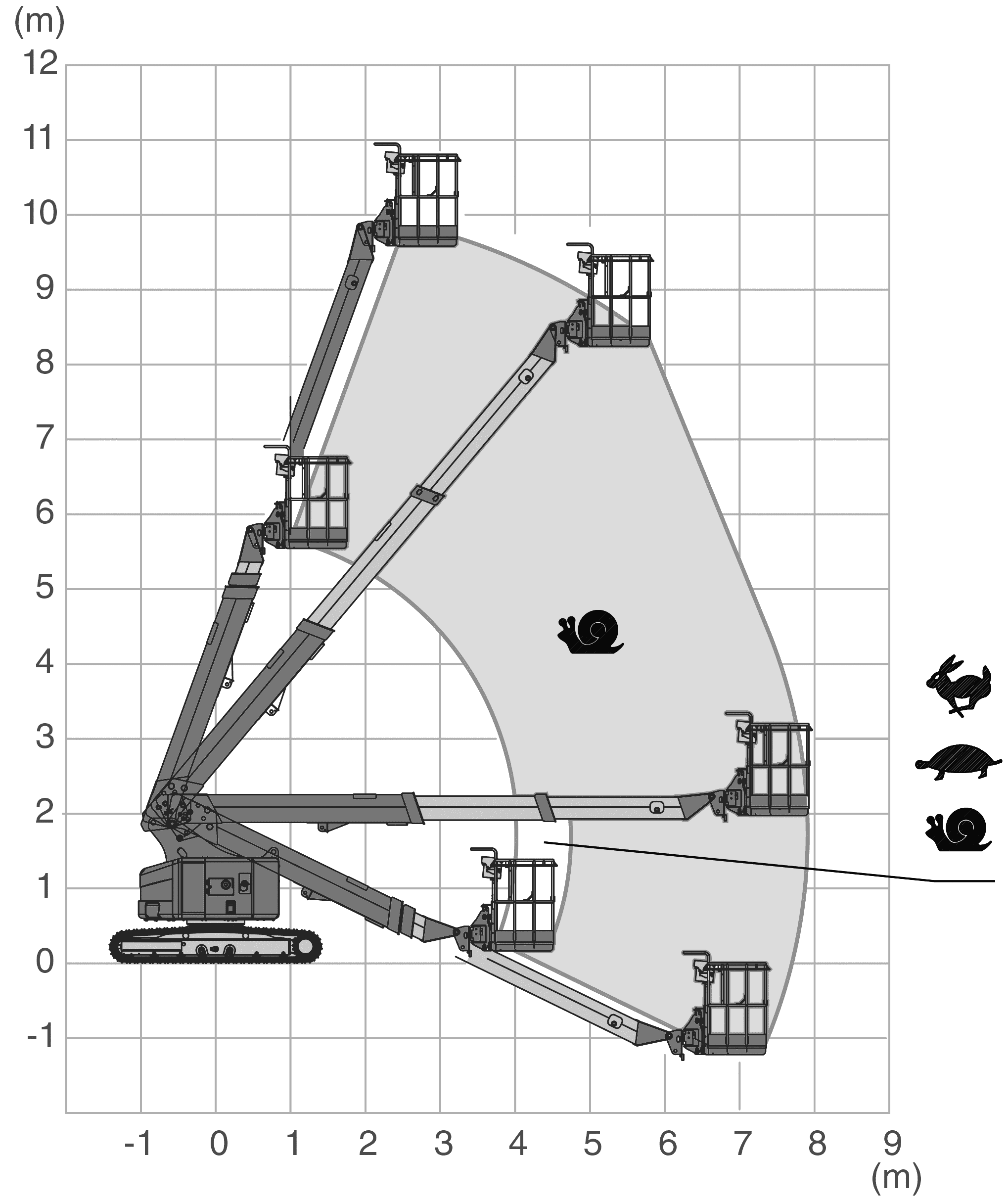Deze hoogwerker heeft een eigen gewicht van 5970 kilogram. In combinatie met de rups aandrijving is deze machine dus zeer terreinvaardig!