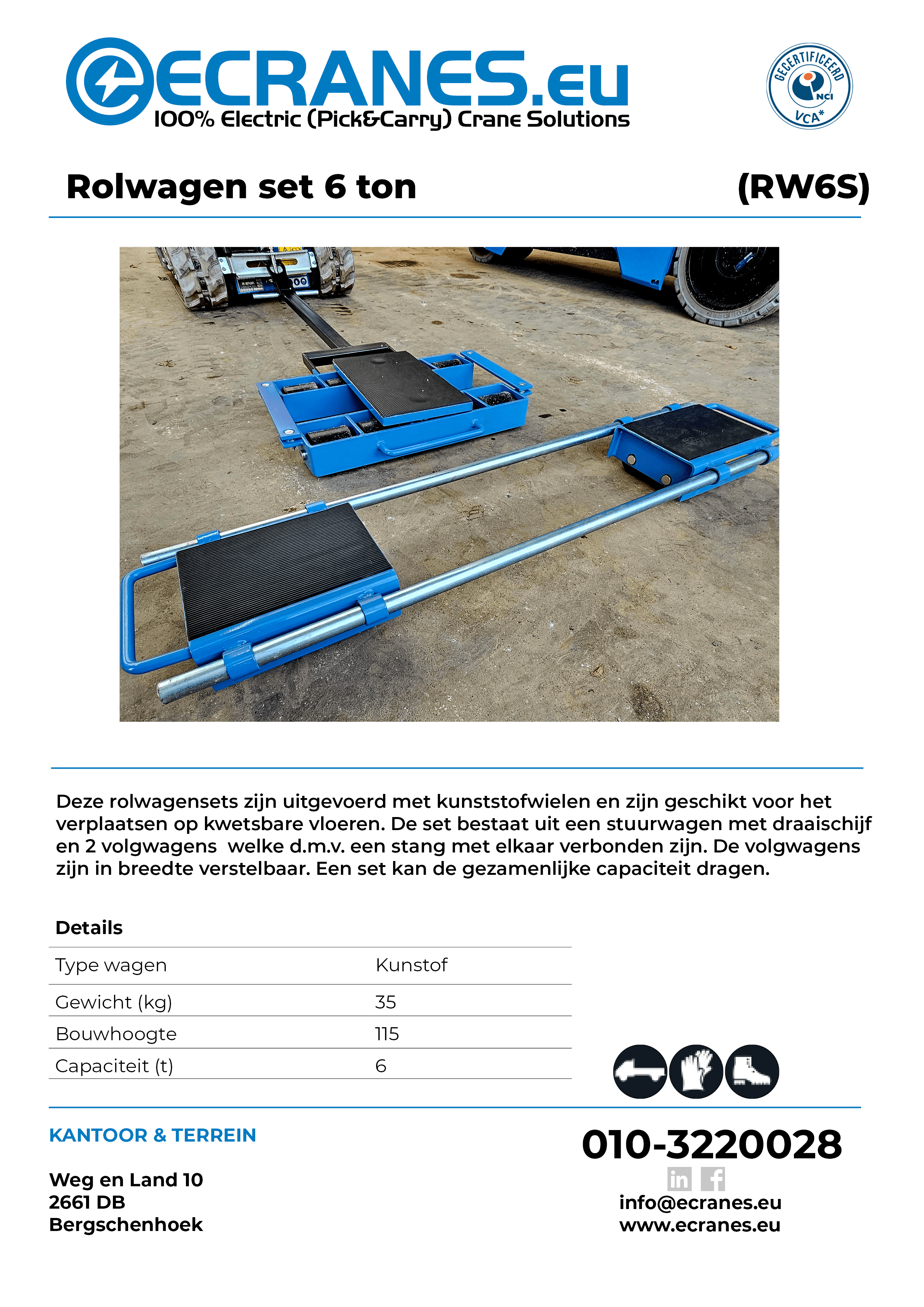 Transportsets huren? Bij Ecranes is dit mogelijk. Ecranes biedt verschillende transportsets aan, variรซrend van 3 tot 20 ton. Met onze transportsets bent u in staat om zware lasten te tillen, een uitermate handig hulpmiddel tijdens uw hijswerkzaamheden. Met een transportset heeft u een hoge maximale capaciteit met een enorm lage lasthoogte